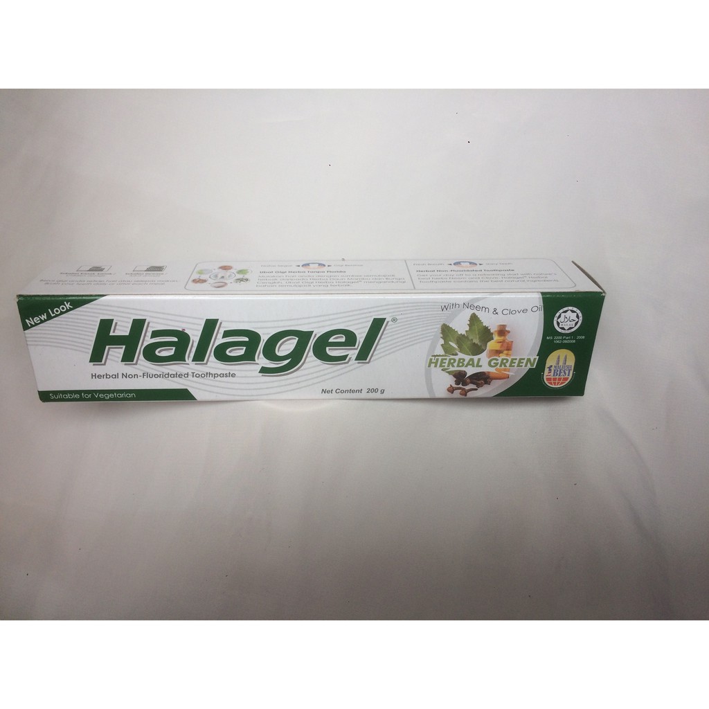 Malaysian Brand - quality excellence distinction Malaysia best Halal - Malaysia Foaming Non-Fluoridated Toothpaste. Halagel Ubat Gigi Herba Tanpa Florida Herbal Green 200g RM 540 Read more. Ubat Gigi Halagel Ora Kidz Strawberry 50g Produk Bumiputra buatan Malaysia.