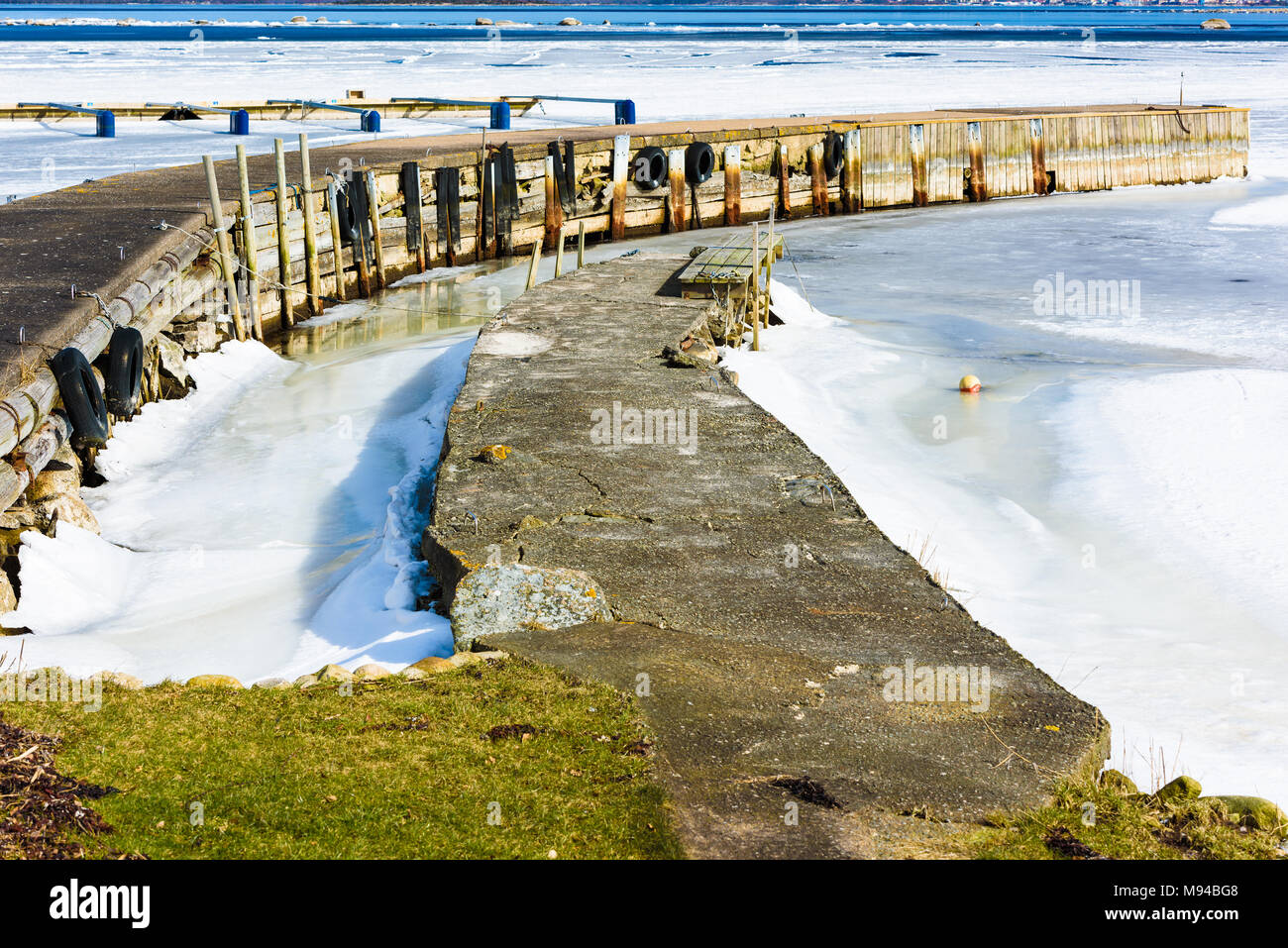 Thawing Spring Ice By A Couple Of Jetties Band Of Open Sea In The Distance Meltwater Close To The Jetty Location Hasslo Island In Southern Sweden Stock Photo Alamy